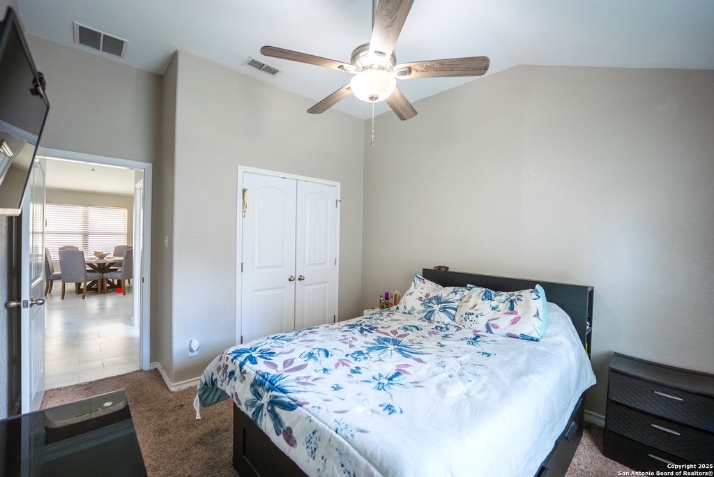 The three additional bedrooms—offer cozy, private retreats. Each with spacious closets and naturally well lit. One of the additional bedrooms features wood like flooring. The additional bedrooms are both softly carpeted.