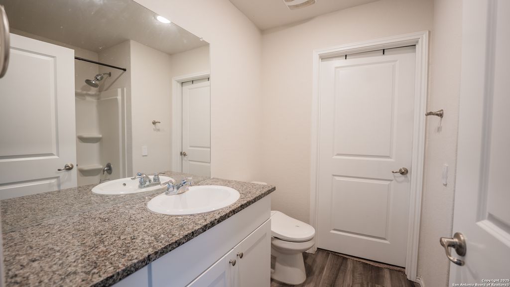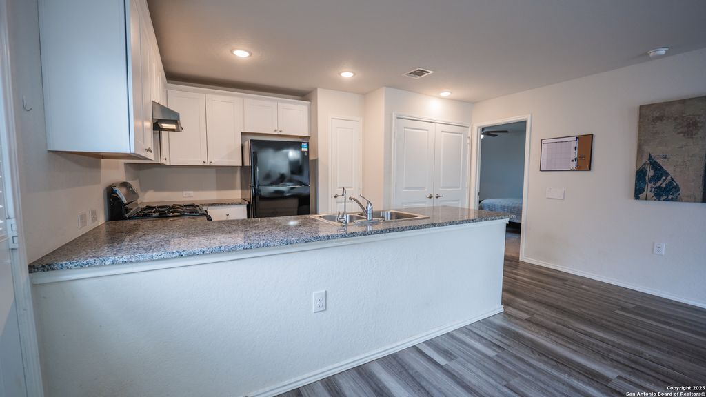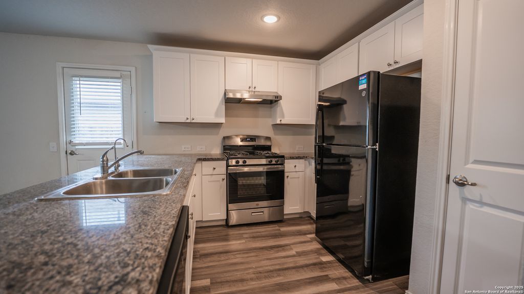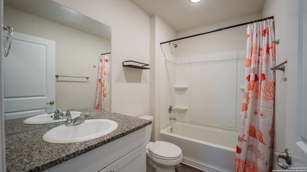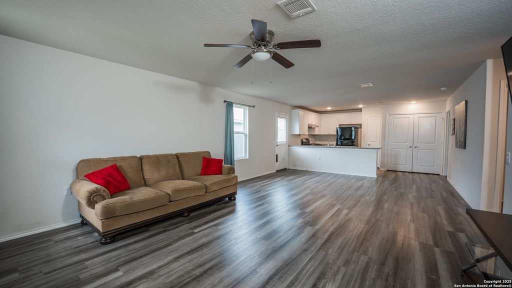 Welcome to 12923 Links Beach-a thoughtfully designed home from the Cottage Collection, offering 3 bedrooms, 2 full baths, and 1,266 sq. ft. of functional living space. The open-concept layout seamlessly connects the kitchen, dining, and living areas, creating a warm and inviting atmosphere perfect for entertaining or everyday comfort. The kitchen shines with granite countertops, a gas range, and a clear view into the dining area, making it both stylish and practical. The private master suite is tucked away in the back corner of the home and features a spacious bath and a walk-in closet large enough to impress any wardrobe. Two additional bedrooms and a full bath are situated near the front-ideal for guests, a home office, or family living. Enjoy added privacy with no back neighbors, and relax knowing you're just a short walk from the renowned Million Del Lago Golf Course-a scenic 18-hole course celebrated for its lakeside views and rolling fairways. Fun fact: The course has earned praise as one of the best-kept secrets in Texas golf, offering a high-quality experience at a surprisingly affordable rate. You'll also love the convenience of nearby Jim Mattox Park, offering trails, playgrounds, and green space just steps from your front door. This home is perfect for those seeking low-maintenance living with lifestyle perks in a quiet, golf-course-adjacent community.
