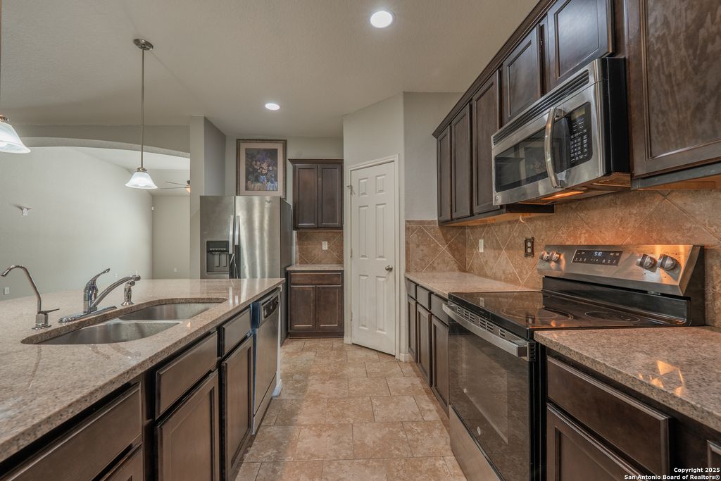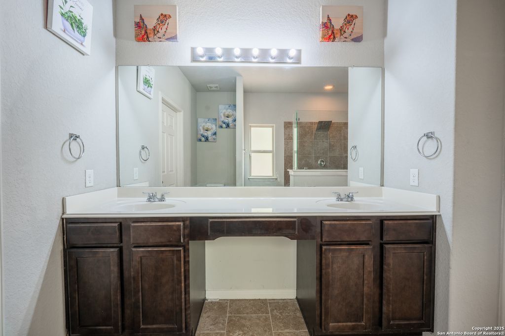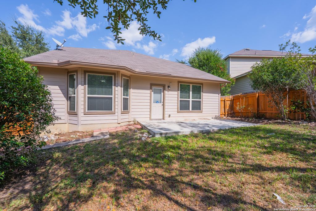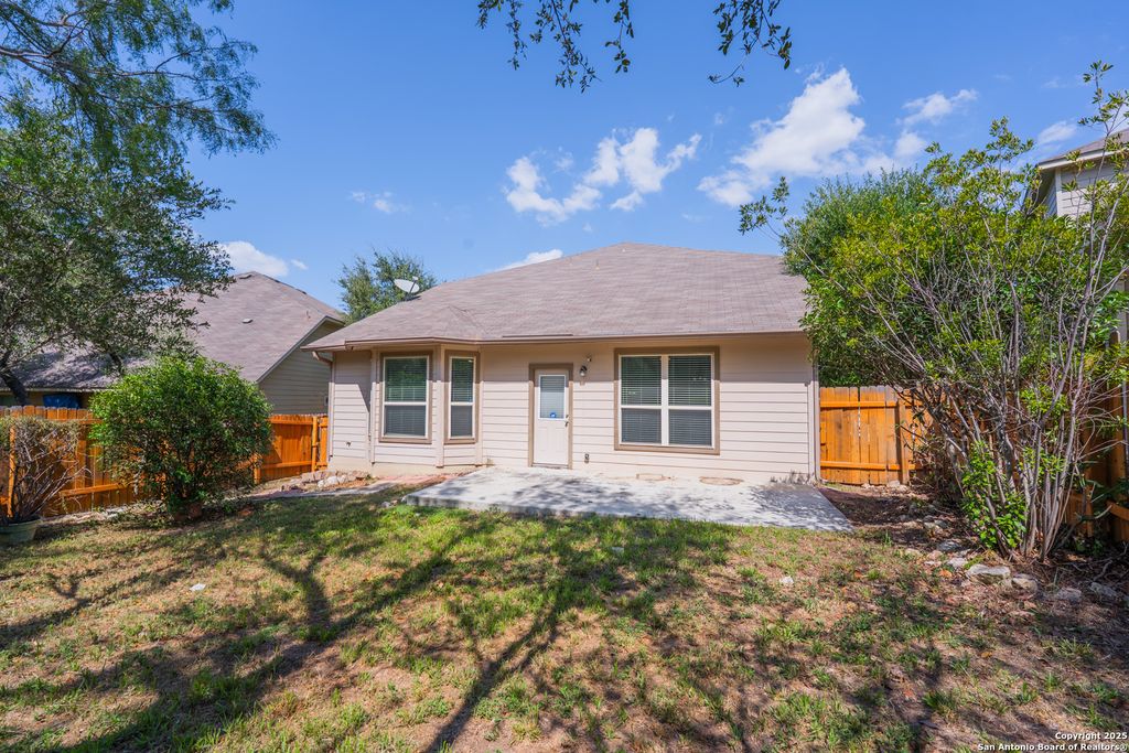 Welcome to 1423 Dancing Wolf - a beautifully maintained two-story home nestled in the peaceful Wolf Creek community on San Antonio's thriving west side. Step inside and experience over 2,700 square feet of thoughtfully designed living space. Built in 2015, this home offers an open-concept layout that blends generous proportions with everyday comfort. The heart of the home is the expansive living room, where high ceilings and warm wood laminate flooring create a sense of openness and flow. Just off the living area, the kitchen truly shines - featuring recessed lighting, an oversized island with an undermount sink, granite countertops, flat-top stove, sizeable pantry, and tall cabinets that offer an abundance of storage. The kitchen flows seamlessly into the dining area, which includes a charming built-in study desk - perfect for organizing your day or staying productive while at home. A large laundry room is conveniently located on the main level, offering additional utility and storage. The primary suite downstairs offers a private retreat with high ceilings, dual vanities, and a walk-in shower - ideal for relaxation at the end of the day. Upstairs, a second primary suite with its own en suite bathroom provides flexible living arrangements for extended guests, multi-generational needs, or personal comfort. Also upstairs, you'll find two additional bedrooms, another full bathroom, and a spacious media loft - all fully carpeted for comfort. A dedicated home office downstairs adds flexibility for remote work, study, or creative pursuits. Energy-efficient features are built into the design, offering long-term savings and everyday peace of mind. Step outside to enjoy a fully fenced backyard with a concrete patio slab - ready for outdoor relaxation, entertaining, or your next weekend project. Additional highlights include a two-car attached garage and access to quiet, well-kept neighborhood streets. Located within the Southwest Independent School District and just minutes from Loop 1604, this home puts you close to everything - from shopping at HEB, Costco, and Home Depot to golf outings at Briggs Ranch or The Golf Club of Texas. Nearby parks, fitness centers, and restaurants complete the lifestyle package. Come experience the comfort, convenience, and charm of life at Dancing Wolf.