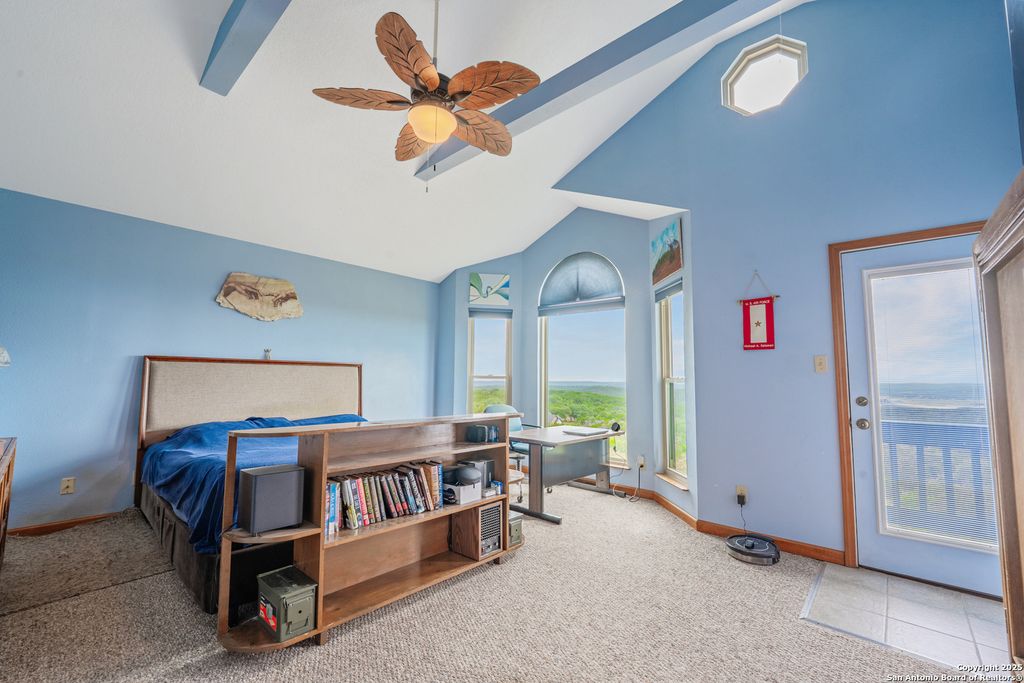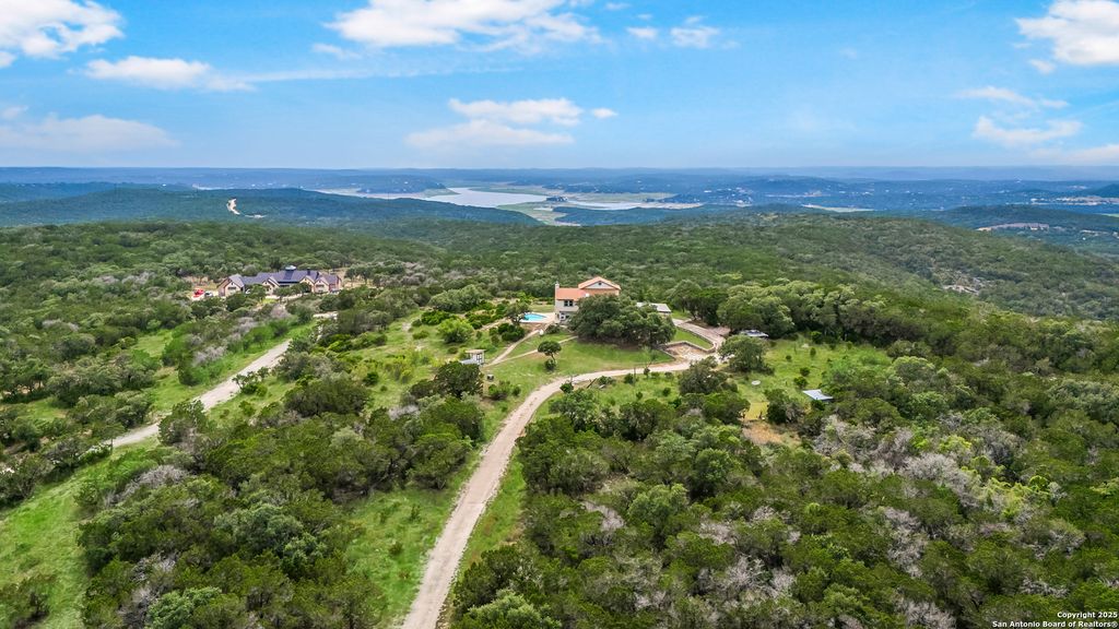 MUST-SEE VIDEO TOUR!!! Welcome to 1494 County Road 270, a rare 46.09-acre hilltop estate in Mico, TX, offering panoramic views of Medina Lake and the surrounding Hill Country. This Tudor-style 3 bed, 2 bath home sits atop one of the highest elevations in the area, with unmatched privacy, breathtaking scenery, and zero HOA or deed restrictions. Inside, you'll find an open floor plan with vaulted ceilings in the living room, a gas fireplace, and beautifully updated flooring throughout. The kitchen features an upgraded gas range, along with extensive storage and light-filled bay windows in the breakfast nook. Additional bay windows in the formal dining room and upstairs primary suite take full advantage of the views. The split-level layout offers two guest bedrooms and a full bathroom with skylight, while the upstairs primary suite includes its own remodeled en suite bath, a walk-in closet, and private step-out balcony - the perfect perch to watch the sun rise over the lake. On the main level, a half-wraparound deck faces the lake, ideal for sipping morning coffee or relaxing in solitude. Below the home, a separate guest suite with full bath and private entrance offers excellent STR or creative space potential (not included in the main home's square footage or bed/bath count). Recent upgrades include: a motorized gated entrance, chip-sealed driveway, new roofs on the home and pump house, updated HVAC system and water heater, upgraded breaker panel, improved insulation, remodeled primary bathroom, and all new Window World brand windows and exterior doors. The estate includes three sheds: a traditional storage shed, a repurposed chapel now serving as a charming workshop, and a fully equipped pump house with a private well, water purification system, and softener. A greenhouse and two livestock shelters add further functionality to the land. Just 17 miles down Culebra from Loop 1604, this property offers unmatched versatility, seclusion, and long-term potential. Schedule your private showing today.