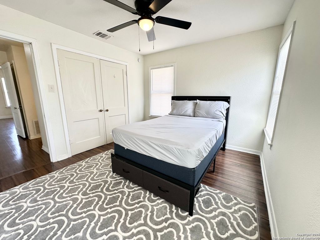 With three comfortable bedrooms, this home provides ample space for relaxation and personalization, each room filled with natural sunlight and a ceiling fan.