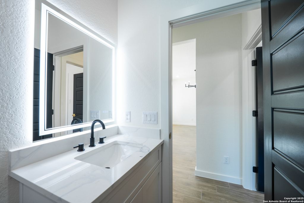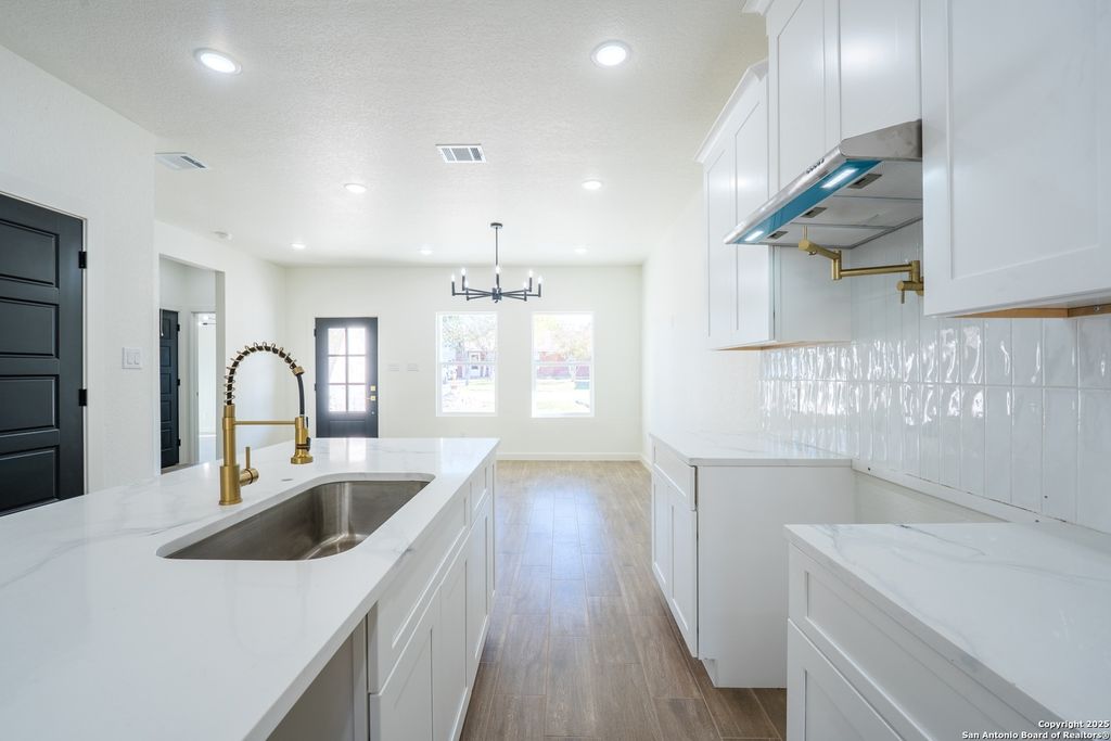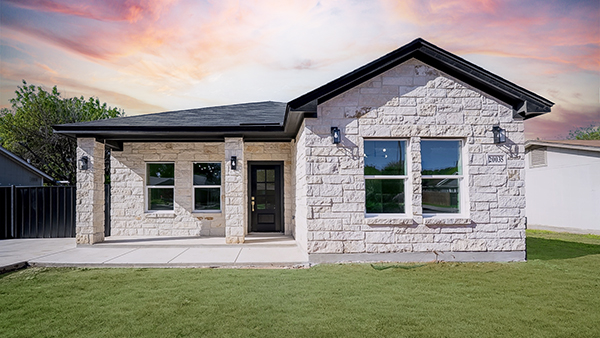 A newly built single-story home in Somerset, Texas-a peaceful, tight-knit community known for its welcoming charm and small-town feel. From the moment you arrive, this home makes a bold statement. A stone-accented front exterior with sleek black trim and a covered porch sets the tone for what’s inside-modern, stylish, and thoughtfully designed. Step inside and you’re immediately greeted by the open-concept living space, designed to make the most of natural light and flow. Warm-toned wood-look tile flooring stretches throughout the entire home, complemented by crisp white walls and dramatic black five-panel doors finished with gold handles-elevating every detail. At the front of the home, the living room welcomes you with a striking black modern chandelier-a bold design element that anchors the space. It opens seamlessly into the kitchen, where clean lines and upscale finishes define the heart of the home. A large white quartz island sits at the center, offering a natural gathering point. The extended overhang is perfect for casual seating, while the backdrop of white shaker-style cabinetry, a sleek range hood, and a glossy textured backsplash creates a crisp, contemporary look. Recessed lighting throughout the entire area completes this space. Just beyond the kitchen, the dining area offers an intimate, sunlit space beneath a glamorous gold chandelier. Oversized sliding glass doors open directly to a fenced backyard, extending your living space outdoors. Tucked away at the rear of the home for added privacy, the primary suite offers a peaceful retreat. A striking gold multi arm chandelier becomes a focal point, while windows draw in soft natural light. The ensuite bath features a walk-in shower wrapped in elegant marble-look tile, a built-in niche, a horizontal privacy window, and a sleek single vanity with white cabinetry. Two additional bedrooms offer comfortable, well-lit living quarters-each one featuring a unique black chandelier and spacious closets. A shared full bathroom connects them, complete with a soaking tub and shower combination surrounded by matching marble-look tile for a unified, modern feel. Step outside to your private backyard -fully fenced and complete with a covered patio. With mature trees and plenty of space to entertain or garden, this outdoor space is ready for you to enjoy year round. With no HOA restrictions, 20035 this home blends simplicity with style in one of Somerset’s most inviting neighborhoods. Your next chapter could begin right here. For more information, contact one of our REALTORS® today!