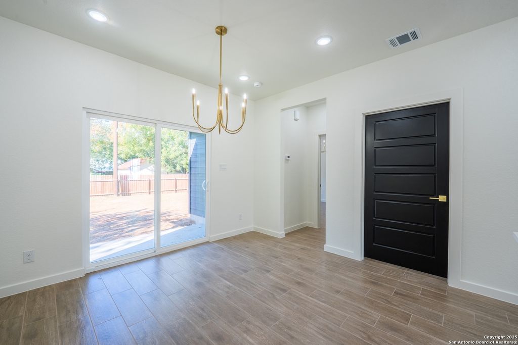 A newly built single-story home in Somerset, Texas-a peaceful, tight-knit community known for its welcoming charm and small-town feel. From the moment you arrive, this home makes a bold statement. A stone-accented front exterior with sleek black trim and a covered porch sets the tone for what's inside-modern, stylish, and thoughtfully designed. Step inside and you're immediately greeted by the open-concept living space, designed to make the most of natural light and flow. Warm-toned wood-look tile flooring stretches throughout the entire home, complemented by crisp white walls and dramatic black five-panel doors finished with gold handles-elevating every detail. At the front of the home, the living room welcomes you with a striking black modern chandelier-a bold design element that anchors the space. It opens seamlessly into the kitchen, where clean lines and upscale finishes define the heart of the home. A large white quartz island sits at the center, offering a natural gathering point. The extended overhang is perfect for casual seating, while the backdrop of white shaker-style cabinetry, a sleek range hood, and a glossy textured backsplash creates a crisp, contemporary look. Recessed lighting throughout the entire area completes this space. Just beyond the kitchen, the dining area offers an intimate, sunlit space beneath a glamorous gold chandelier. Oversized sliding glass doors open directly to a fenced backyard, extending your living space outdoors. Tucked away at the rear of the home for added privacy, the primary suite offers a peaceful retreat. A striking gold multi arm chandelier becomes a focal point, while windows draw in soft natural light. The ensuite bath features a walk-in shower wrapped in elegant marble-look tile, a built-in niche, a horizontal privacy window, and a sleek single vanity with white cabinetry. Two additional bedrooms offer comfortable, well-lit living quarters-each one featuring a unique black chandelier and spacious closets. A shared full bathroom connects them, complete with a soaking tub and shower combination surrounded by matching marble-look tile for a unified, modern feel. Step outside to your private backyard -fully fenced and complete with a covered patio. With mature trees and plenty of space to entertain or garden, this outdoor space is ready for you to enjoy year round. With no HOA restrictions, 20035 this home blends simplicity with style in one of Somerset's most inviting neighborhoods. Your next chapter could begin right here.