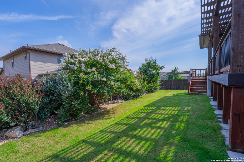 Back on Market Due to Buyer's Inability to Obtain Financing Welcome to 23126 Lexington Park, a beautifully maintained single-story home located in the gated community of The Cliffs at Cibolo - one of North San Antonio's most sought-after neighborhoods. This energy-efficient 3-bedroom, 2-bath home with a versatile flex space offers 1,964 sq ft of thoughtfully designed living space. Outfitted with solar panels, this home delivers lower utility costs and a more sustainable lifestyle without sacrificing comfort or style. Built on the popular Lexington floor plan, the open-concept layout seamlessly connects the kitchen, dining, and living areas, creating a space that is both functional and inviting. High tray ceilings in the living room and primary suite add architectural dimension and elegance. The kitchen features a large center island, granite countertops, stainless steel appliances, gas cooktop, and built-in microwave and oven - ideal for everyday living and entertaining. A unique feature of this home is the covered front courtyard, offering a peaceful and private sitting area perfect for morning coffee or evening relaxation. Inside, the flexible front room-open to both the foyer and kitchen-can serve as a study, secondary living space, or flex room to suit your needs. Out back, enjoy a beautifully designed outdoor space with a covered patio and premium artificial decking - stylish, durable, and low-maintenance. Situated minutes from The Village at Stone Oak, Target, Alamo Drafthouse, and top-rated dining and retail, this home also offers quick access to TPC Marriott Resort, Highway 281, Bulverde Road, and is directly across from Johnson High School. With its modern layout, upgraded energy features, and unbeatable location, 23126 Lexington Park presents a rare opportunity to own a high-efficiency, move-in-ready home in a prime San Antonio community.
