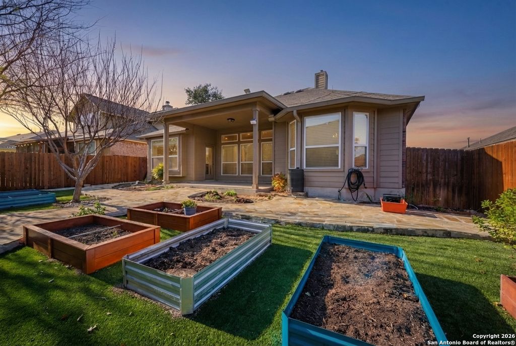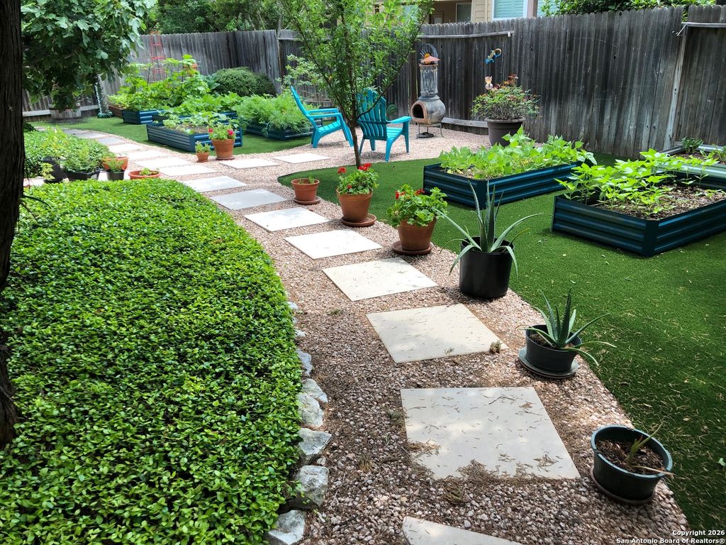 Outside, enjoy your own backyard oasis with a covered patio featuring epoxy-treated flooring, landscaped garden beds, flagstone walkways, artificial turf, and stained privacy fencing—perfect for relaxing or entertaining year-round.