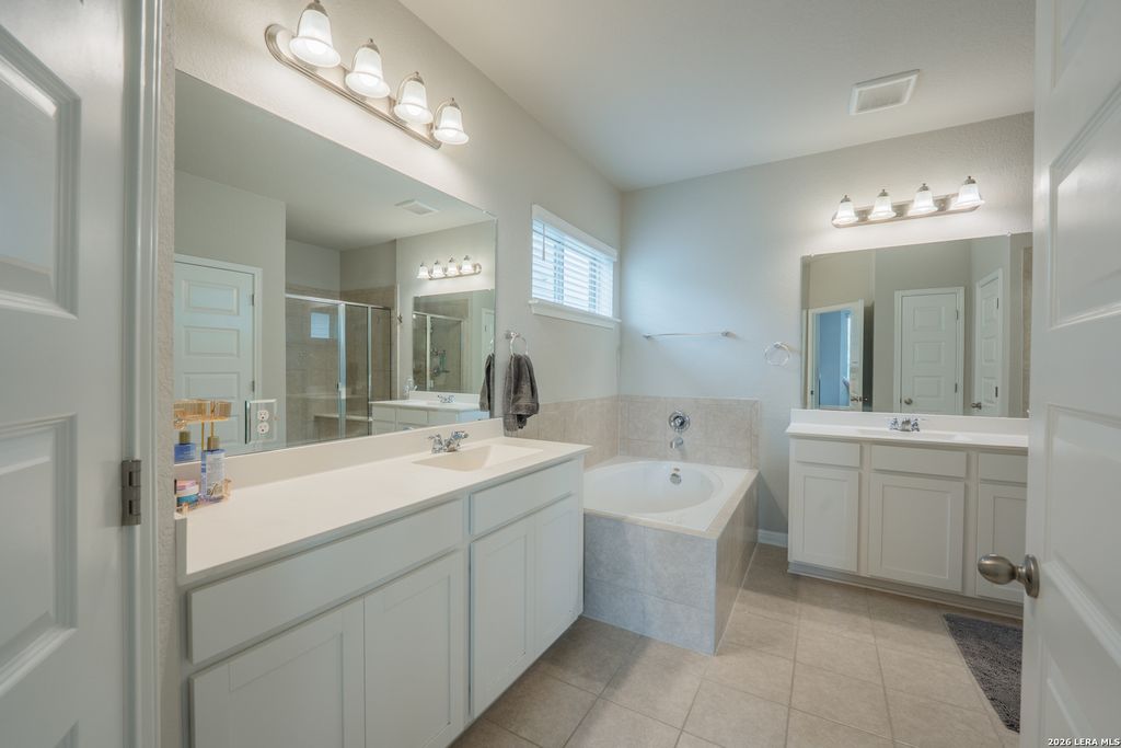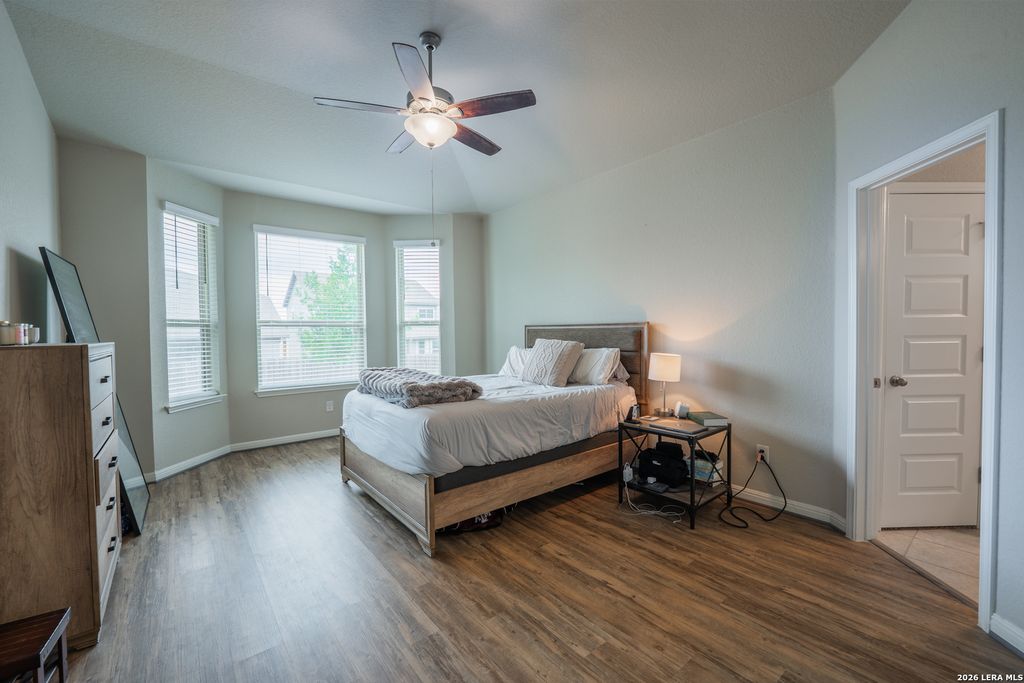 The living room has tall ceilings with ceiling fan plenty of natural light. Your primary retreat boasts raised ceilings, ceiling fan, and bay windows. The primary bath has garden tub, separate stand up tile shower with seat, two vanities, and private commode.