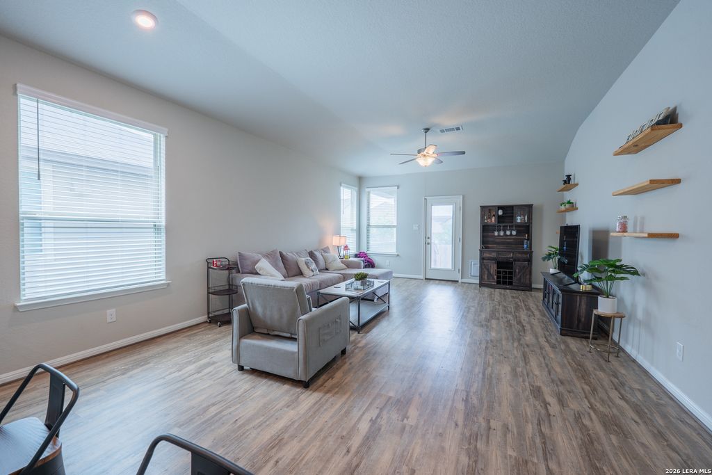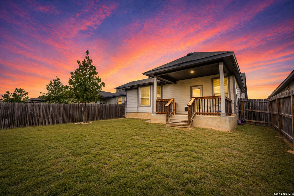 This home feeds to award winning Schertz Cibolo UC ISD schools. The backyard has a covered patio, doggy door, and gas cooking/appliance connection. This home also features, built-in wall pest control, water softener, 2” faux wood blinds throughout, video doorbell, and keyless entry.