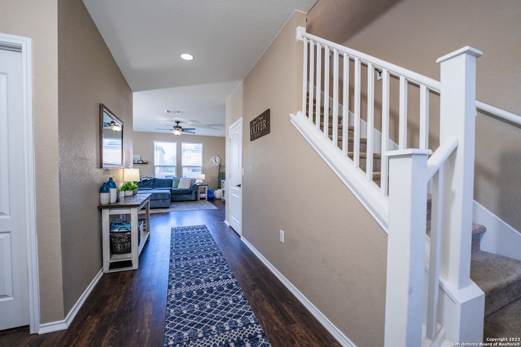 Welcome home! This 4 bedroom, 3 full bath home is nearly 2,300 sqft, built in 2015 and ready for new owners. Upon entry, you'll notice the updated luxury plank flooring with Bedroom, full bath, and utility room just to your left. The living room has an abundance of natural light and is open to the dining and kitchen. Upstairs you'll find a loft space perfect for an office or a great spot for a media room. Escape to the large primary retreat with ceiling fan. Attached is the primary bathroom with dual vanities, tub with tile shower combo, and walk in closet. Secondary bedrooms are just down the hallway with an additional full bathroom. Save on your utility bills with the 4KW solar panels installed. This home also boasts TWO water heaters, indoor utility room, heavy composition roof installed in 2016, in wall pest control, built in shelving in garage, wired for security with video doorbell and additional backyard camera, and water softener system. Other energy efficient attributes include smart programmable thermostat, double pane windows, and radiant barrier. Backyard features covered patio with cement slab. Easy access to Ft Sam Houston, Joint Base Randolph, BAMC, and plenty of shopping and restaurants. Great home in a great location!